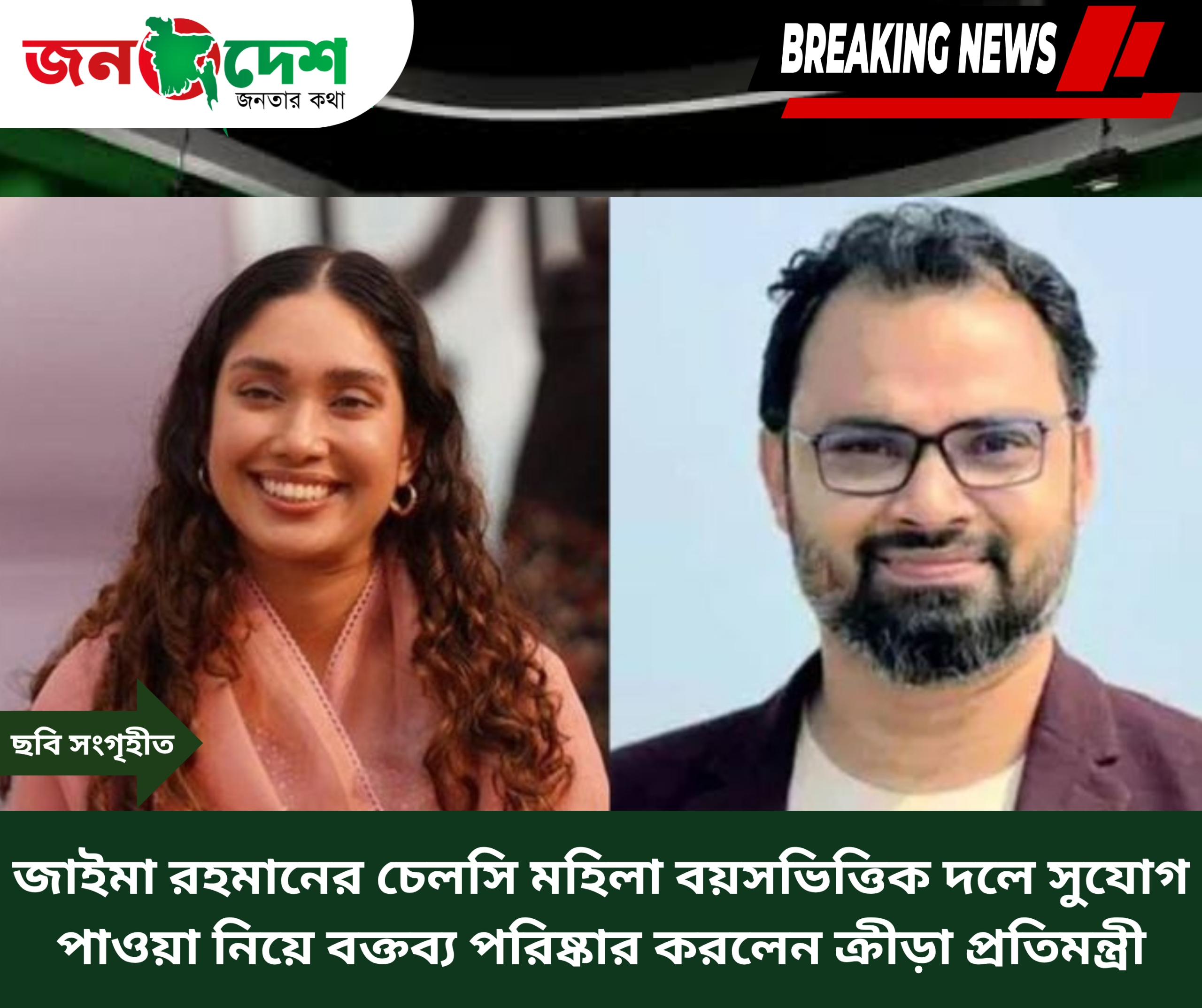 জাইমা রহমানের চেলসির মহিলা বয়সভিত্তিক দলে সুযোগ পাওয়া নিয়ে বক্তব্য পরিষ্কার করলেন ক্রীড়া প্রতিমন্ত্রী