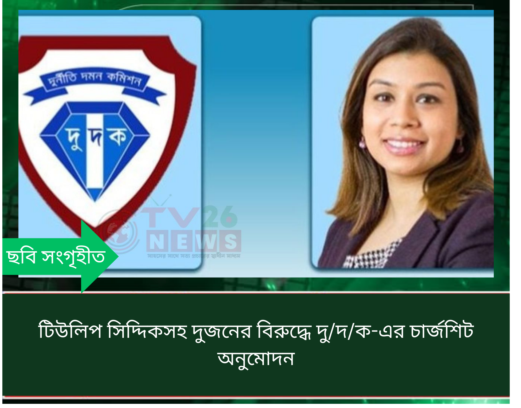 রাজধানীর গুলশানে একটি প্লট অ/বৈ/ধ ভাবে হস্তান্তরের সহযোগিতা করার অভিযোগে যুক্তরাজ্যের সাবেক মন্ত্রী টিউলিপ রিজওয়ানা সিদ্দিকসহ দুজনের বিরুদ্ধে চার্জশিট অনুমোদন করেছে দু/দ/ক। মামলায় তার সঙ্গে রাজউকের সাবেক সহকারী আইন উপদেষ্টা সরদার মোশারফ হোসেনকেও আসামি করা হয়েছে।