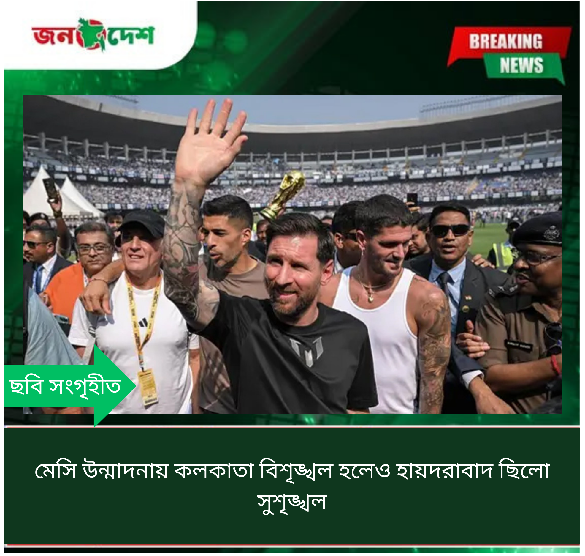 ফুটবলের আইকন লিওনেল মেসিকে ঘিরে ভারতের দুই শহরে দেখা গেছে দুরকম চিত্র। সকালে কলকাতার যুবভারতী ক্রীড়াঙ্গনে বিশৃঙ্খলার মধ্যে পড়ে প্রত্যাশিত আয়োজন ব্যাহত হলেও, সন্ধ্যায় হায়দরাবাদে সুশৃঙ্খল ব্যবস্থাপনায় সফল একটি অনুষ্ঠান উপহার দিল উপ্পল স্টেডিয়াম কর্তৃপক্ষ।