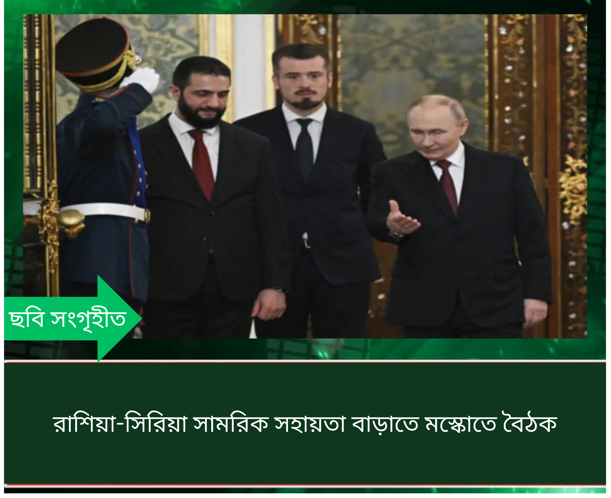 রাশিয়া ও সিরিয়ার মধ্যে সামরিক সহায়তা ও প্রতিরক্ষা সহযোগিতা আরও জোরদার করতে মস্কোতে উচ্চপর্যায়ের বৈঠক অনুষ্ঠিত হয়েছে। রুশ প্রেসিডেন্ট ভ্লাদিমির পুতিনের সঙ্গে সাক্ষাৎ করেন সিরিয়ার পররাষ্ট্রমন্ত্রী আসাদ হাসান আল-শাইবানি এবং প্রতিরক্ষামন্ত্রী মুরহাফ আবু কাসরা।