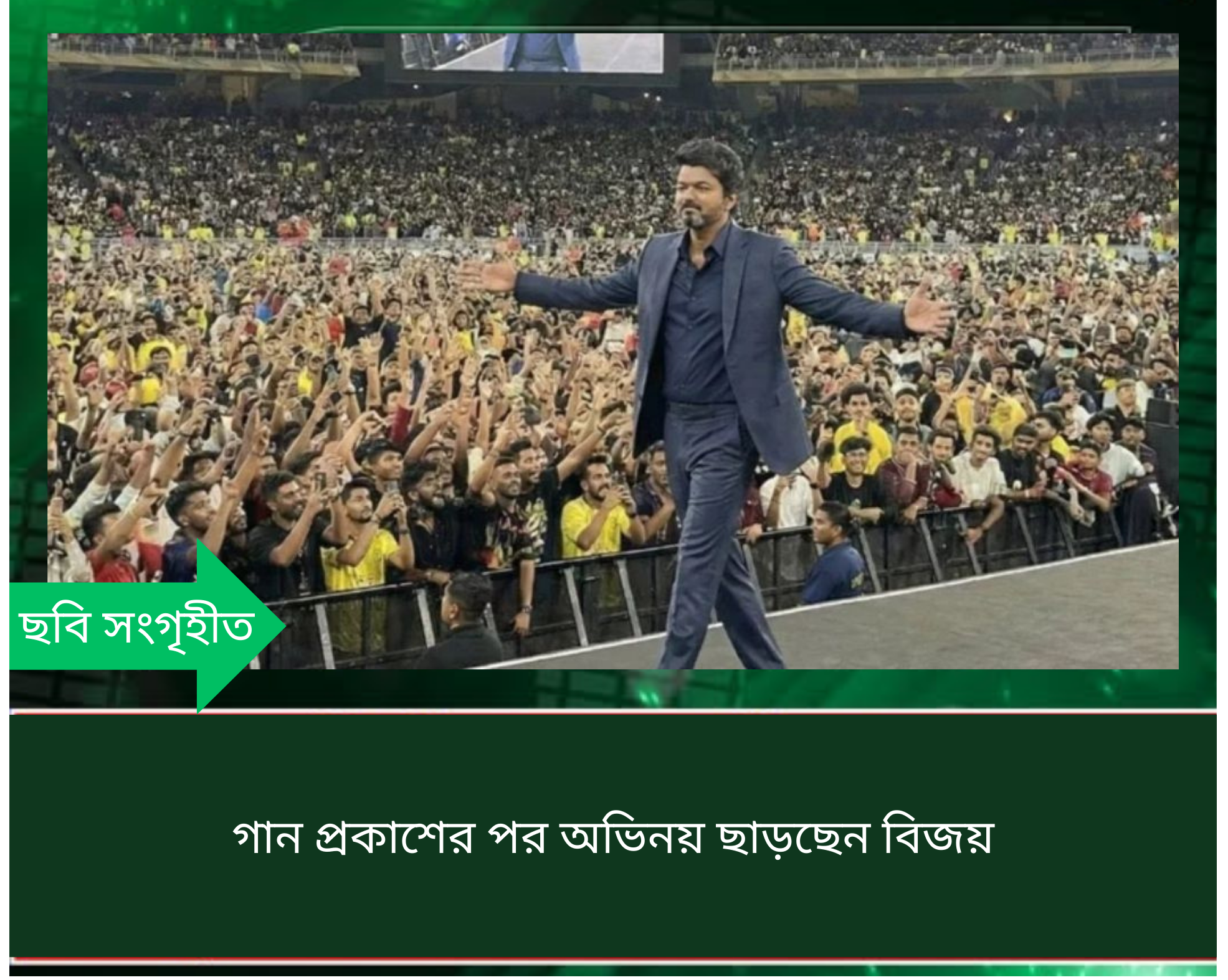 দক্ষিণ ভারতীয় সুপরিচিত অভিনেতা থালাপতি বিজয় ঘোষণা করেছেন, তার শেষ সিনেমা ‘জন নায়াগান’ মুক্তির পর তিনি অভিনয় থেকে সরে যাচ্ছেন। সিনেমাটি আগামী ৯ জানুয়ারি মুক্তি পাচ্ছে।
