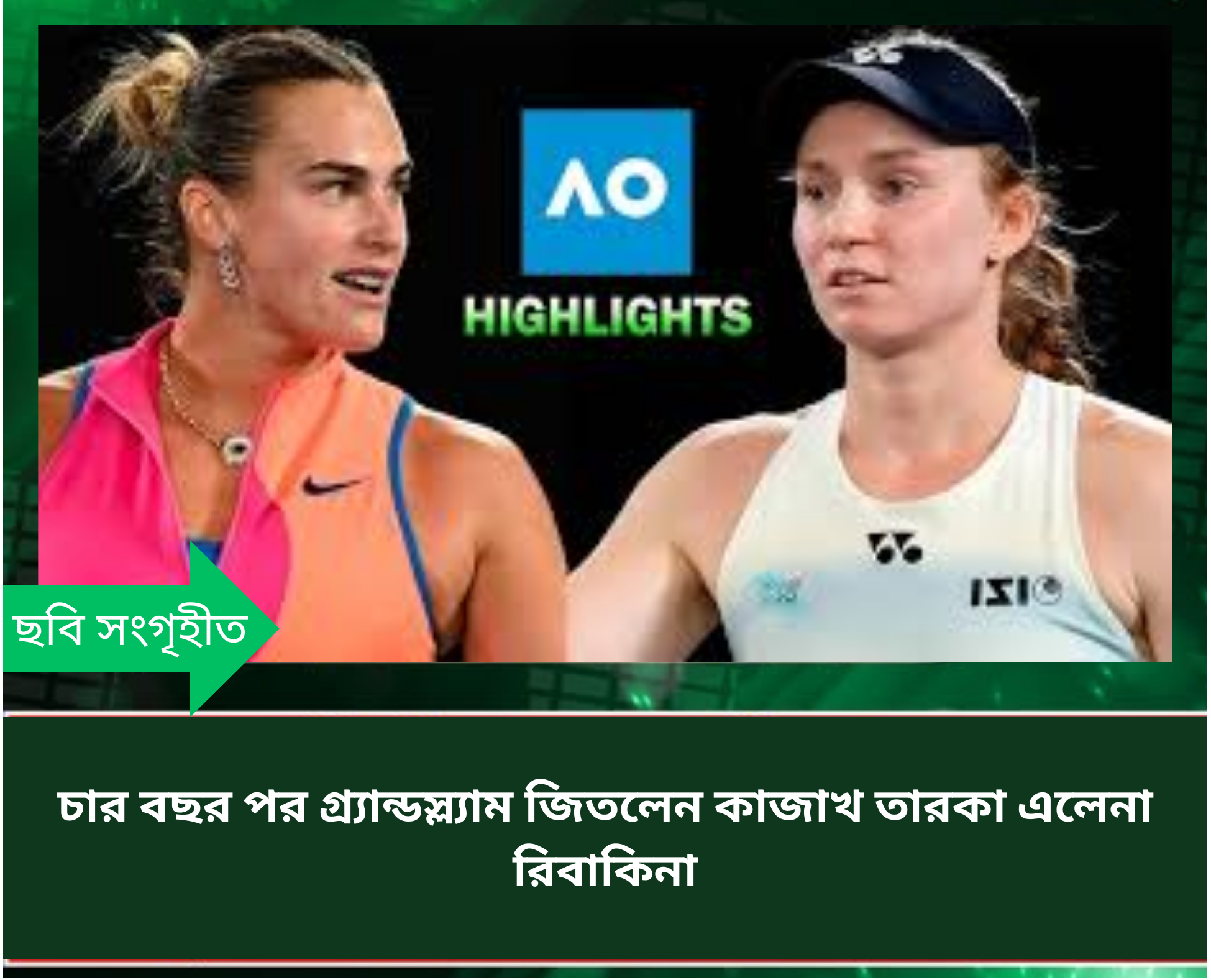 অস্ট্রেলিয়ান ওপেনের নতুন রানী এলেনা রিবাকিনা। চার বছর পর গ্র্যান্ডস্ল্যাম শিরোপা জিতলেন কাজাখ তারকা। অন্যদিকে শেষ চারটি গ্র্যান্ডস্ল্যামের মধ্যে তিনটিতেই ফাইনালে হারলেন আরিনা সাবালেঙ্কা। ফাইনালে ২-১ সেটে পরাজিত হন বেলারুশিয়ান তারকা।